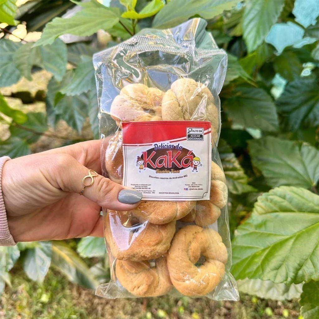 Com textura crocante e aroma suave esta iguaria se desmancha na boca, revelando um equilíbrio perfeito entre doçura e leveza. Embalada artesanalmente no clássico saquinho, ela mantém viva a essência dos quitutes mineiros feitos à mão sem pressa, sem truques, só com ingredientes honestos e amor pela tradição.